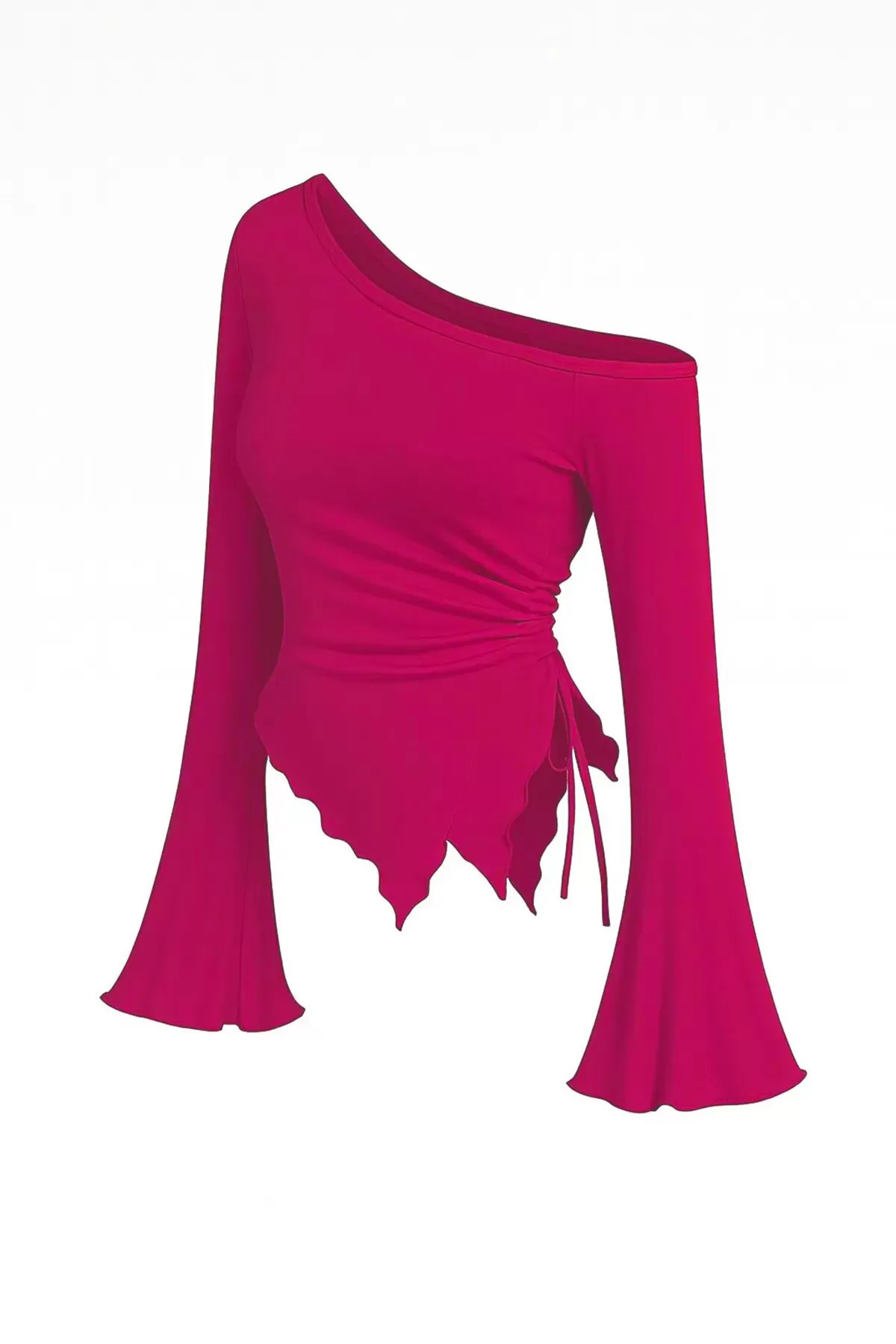 İddialı ama zarif bir görünüm isteyenler için Kadın Fuşya Asimetrik Yaka Drapeli Yan Bağlamalı Bluz, gardırobun en enerjik parçalarından biri olacak.