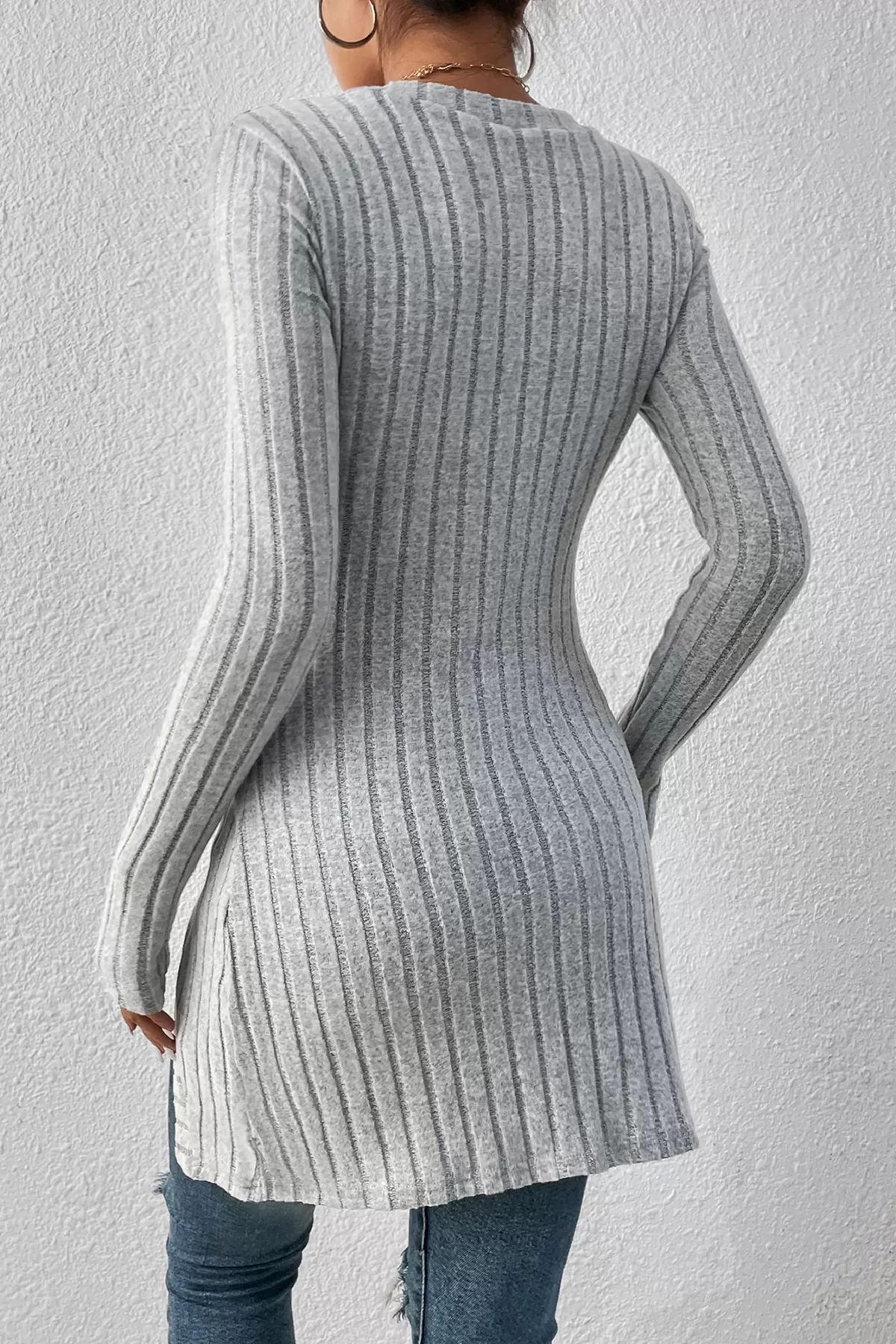 • Ürün Adı: Açık Gri Uzun Kollu Fitilli Bluz