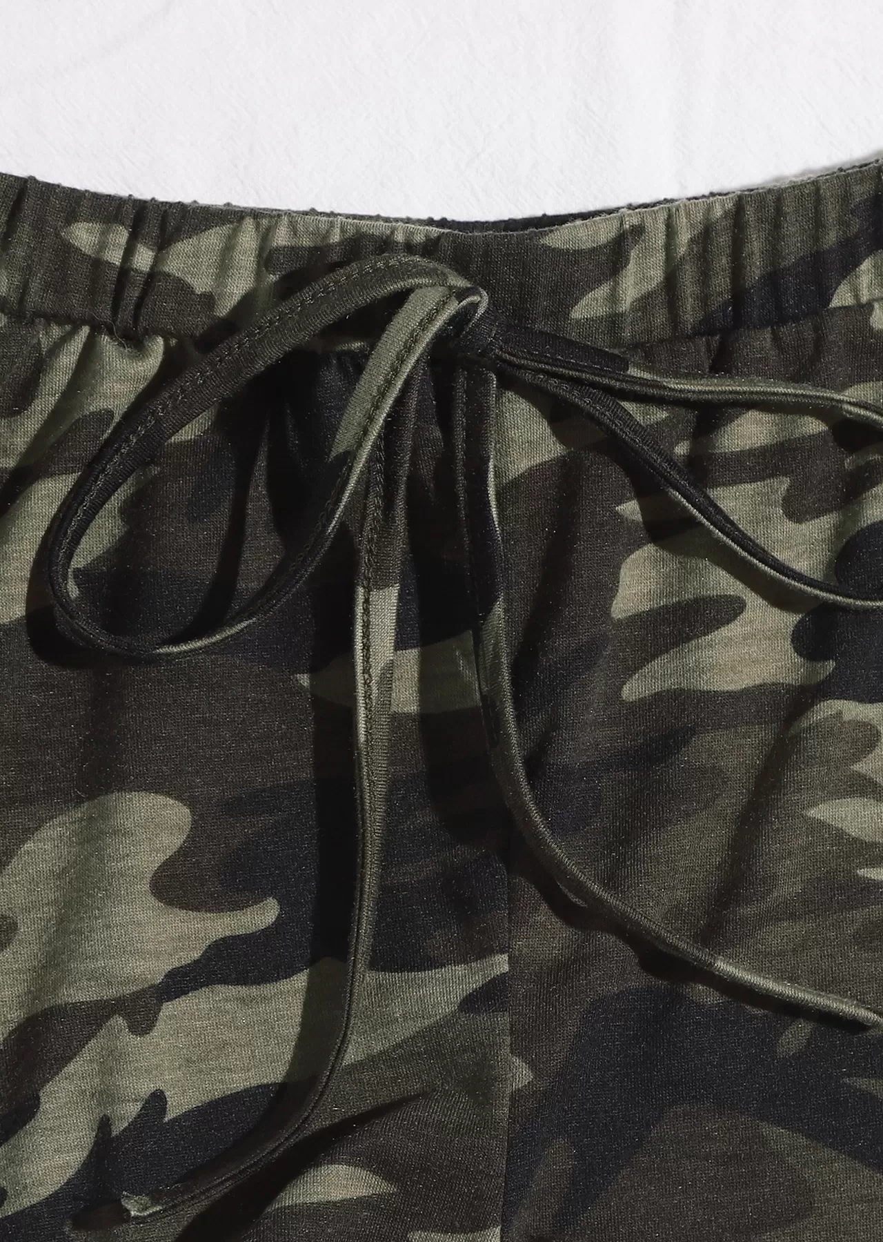 • Askılı Crop ve Şortlu Kamuflaj Desenli Gecelik Takım