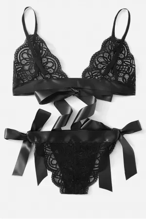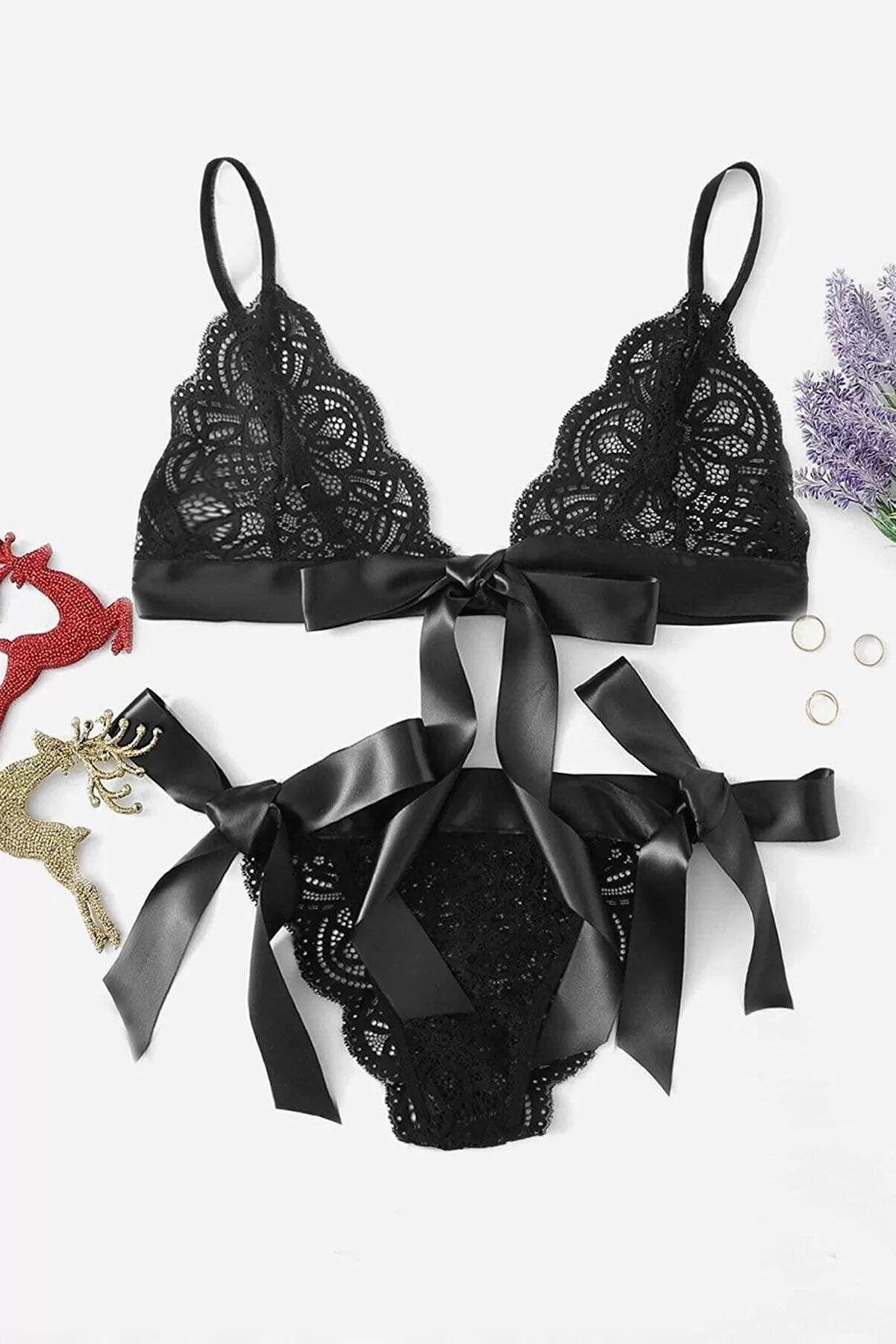Kadın Siyah Kurdelalı Ve Dantelli Sütyen Külot Takımı