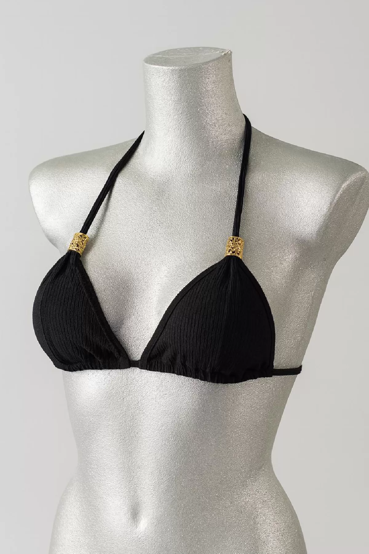 • Zamansız şıklığın simgesi siyah pedli üçgen bikini üstü, plaj stiline sofistike ve güçlü bir dokunuş katmak isteyen kadınlar için tasarlandı.
